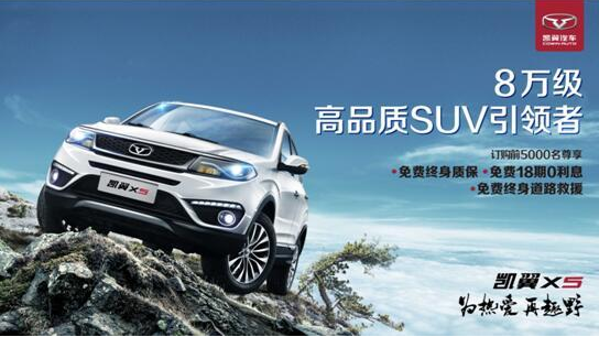 免费三:免费终身道路救援,在整车行驶3年或10万公里后,凯翼X5车主可以继续免费享受终身道路救援服务,让车主免除后顾之忧。