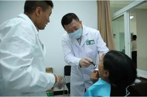 口腔科曲军主任在为藏民进行口腔检查及诊治10