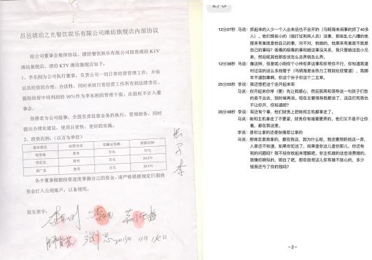 在2017年8月份李东刚在向有关部门举报潍城区地方税务局不作为后,潍城区地税局重新启动调查,稽查人员在调查时向有关被调查对象称李东刚作为潍城琥珀中心的执行董事应承担缴税义务。而事实是:潍城琥珀中心的营业执照载明的负责人是王傅顺(马明海的司机)、在《昌邑琥珀之光餐饮娱乐有限公司潍坊旗舰店内部协议》(及潍城琥珀中心内部协议)上有实际控制人马明海本人的签字,有财务负责人张楷若(海利集团公司人员)的签字,李东刚根本暨不是财务负责人也无权管理财务人员。