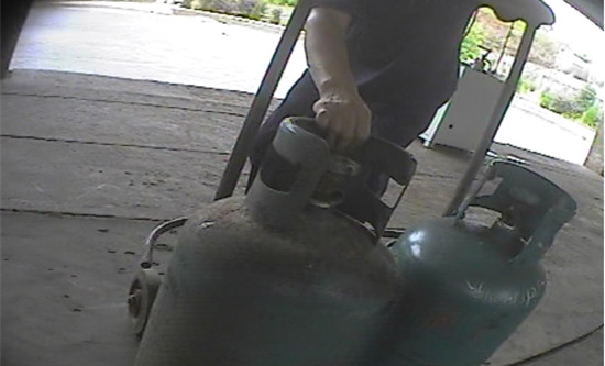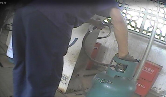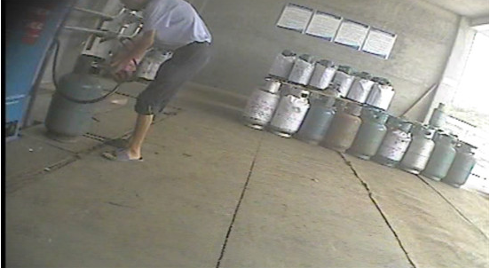 该工作人员进入到站内后,一位疑似加气站负责人的中年女子走了出来,看了一下钢瓶,说是螺丝瓶,不能充气,充了会罚款1万元。但拉气瓶的工作人员说:“充了算了,都已经送过来了,以前又不是没有充过,不是也没有事情吗?”听到该工作人员这么说,那位女性负责人就没再说什么,只是一个劲的催促:快点、快点、快点去充。