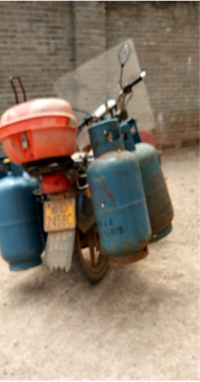记者佯装顾客,去到该加气站。只见该气站大门紧闭,门口停了一辆载有四个充气钢瓶的摩托车,正在等待加气。