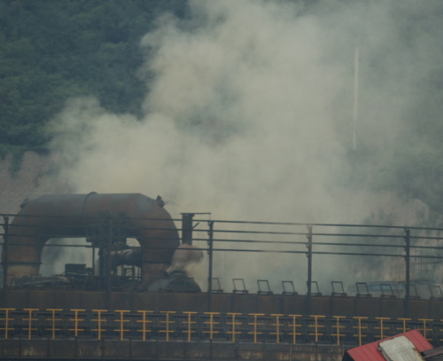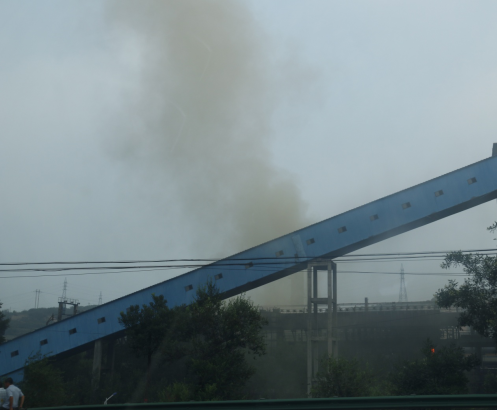 在中煤九鑫焦化有限公司大门外,记者看到,大量煤焦堆放在企业门口,无任何遮盖及防尘设施。此时,厂区内炼焦炉顶部喷薄而出一股股黄色的浓烟,厂区及后面的山体树木全被笼罩在这“人间仙境”里。从外表看企业设备锈迹斑斑,十分老旧。