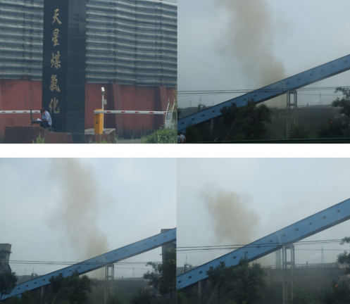 山西天星煤气化有限公司与中煤九鑫情况类似,记者到达时,该企业厂区内也在排放大量黄色烟尘,周围空气刺鼻,附近路面及路旁的树木上均有不同程度的粉尘覆盖。