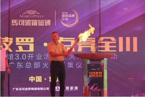 在9月10日,马可波罗瓷砖至尊馆3.0开业活动暨火炬传递仪式现场,富森美家居副总经理吴宝龙,久善家居董事长汤亚,新浪家居媒体事业部总经理张晓辉,与来自全川的马可波罗瓷砖代理商、消费者数百人一起,共同见证了来自马可波罗瓷砖总部的火种,在成都点亮,并开始为期13天的全川传递活动。