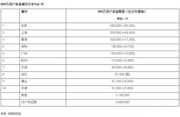 随着社会的高速发展,中国社会的精英阶层在日益壮大。据9月5日胡润研究院发布的《2017胡润财富报告》统计,大中华区600万资产家庭数量达460万户,比去年增长6.3%,其中八成在中国大陆。大陆每940人中就有1人是千万富豪,每1.4万人中有1人是亿万富豪。这些千万资产高净值家庭中,企业主占 55%,金领占20%,炒房者15%,职业股民10%。胡润百富董事长胡润表示,高净值家庭增长速度比GDP还快。