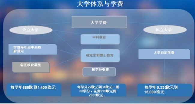 学前教育:从出生至6岁教育,分两个阶段:第一阶段从出生到3岁,侧重早期智力开发,学费约120欧元/月;第二阶段从3至6岁,侧重孩子初步的沟通和学习,第二阶段是免费教育。