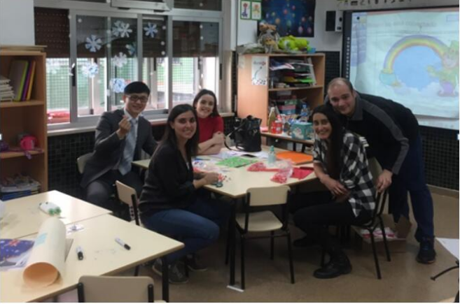侨外海外教育规划院院长杨康晓(左一)在西班牙考察学校