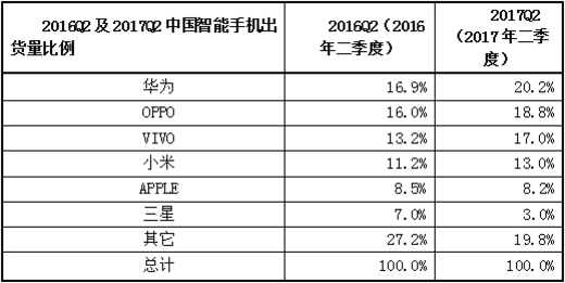我们欣喜的看到,以华为、Oppo 、Vivo为代表的国产手机对iPhone已经形成了强力冲击。2017年第二季度,中国智能手机出货总量为1.13亿台。其中,华为出货量依旧排在首位,为2300万台,Oppo 2100万台列第2位、Vivo 1600万台列第3位,小米1500万台排在第4位。而手机份额前三位排名均与2017年第一季度一致,但是,本土品牌小米超越苹果上升到第四位,而苹果跌至第五。中国制造商占国内智能手机市场87%的份额,其余的由苹果和三星瓜分。国产手机的强势崛起从一个侧面说明中国制造业的发展趋势,我们预计,未来在制造业各领域均会有中国企业参与国际竞争,并赢得可观的市场份额。