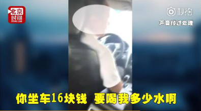 在记者获取的视频中,我们可以对事件进行还原。9月9日,福建福州,一名男子乘滴滴专车时因为索要2瓶水而被司机恶语相向:“你坐车16元,要喝我多少水?‘’从而进行谩骂。