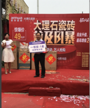 为了感谢广大消费者对安华瓷砖一直以来的支持和厚爱,此次省级联动活动优惠空前,不仅有惊喜的普及价,同时还准备了丰厚的礼品,吸引了众多消费者前来,现场人头攒动,十分火爆,没等开场,活动现场就已经排起了长队,这就是安华瓷砖,这就是品牌的力量!
