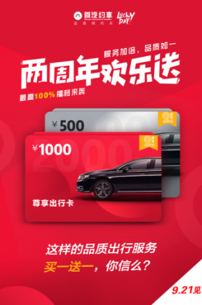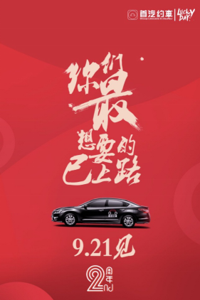 9月16日是首汽约车正式上线2周年的日子,前两天首汽约车就已经发出两张海报,一方面为自己的生日进行庆贺,另一方面也为9月份的Lucky Day活动敲锣打鼓,开始进行预热。