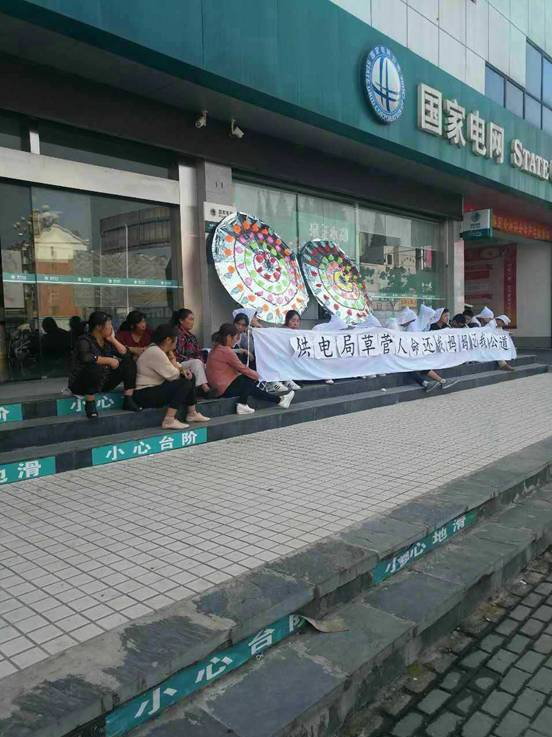 2017年9月14号亲属来到县委大楼门前,要求见县里领导出面处理此事,被特警及公安人员粗暴对待,全部被赶到县信访局,不允许我们出去。上午十一点半左右,再次协商此事,供电公司还是在推卸责任,只愿意补偿伍万圆整,死者丈夫不同意。协商无果。