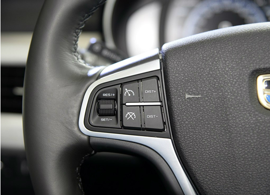 博越在方向盘的左边集成了ACC自适应巡航的所有按钮。在车辆时速30-150公里之间时可以开启,当时速降至25公里时会暂停,若要再次启用需人工加速到30公里以上。开启ACC后就可以用方向盘拨动调速代替脚踩油门,为保证定速电脑会自动加减油,还可根据与前车的距离自动加减速度,前车太近就自动减速甚至ABS会自动介入报警,遇到坡还会自动减速制动。开启ACC不仅实现了精准节油,还大大提高了车辆的安全性。ACC功能实用又轻松,拥有ACC的博越车主们可一定要好好利用这个功能。