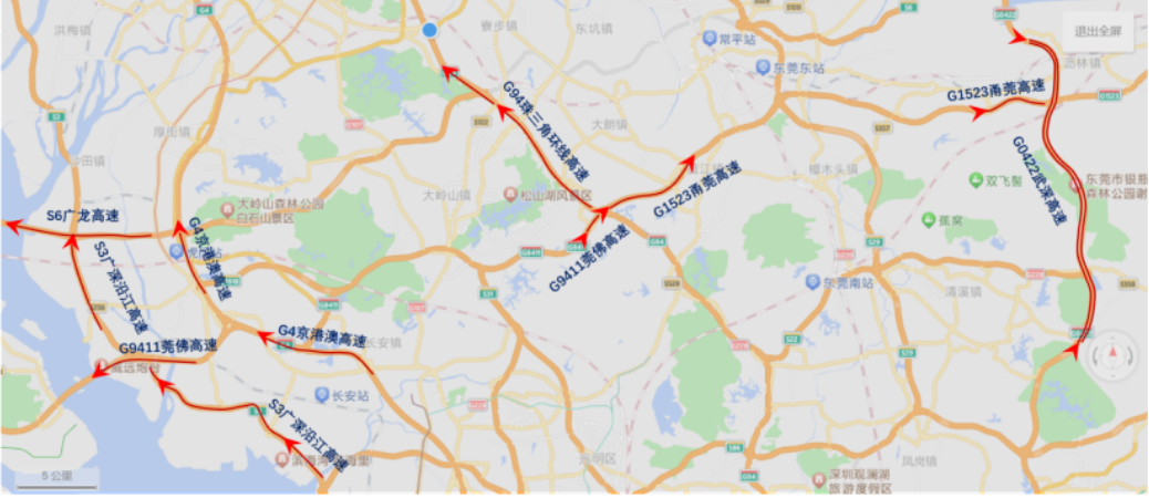 - 莞佛高速(G9411)松山湖站-大有园互通立交段;