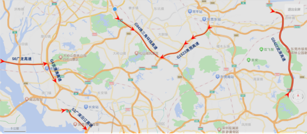 - 京港澳高速(G4)深圳往广州方向长安至五点梅立交路段;