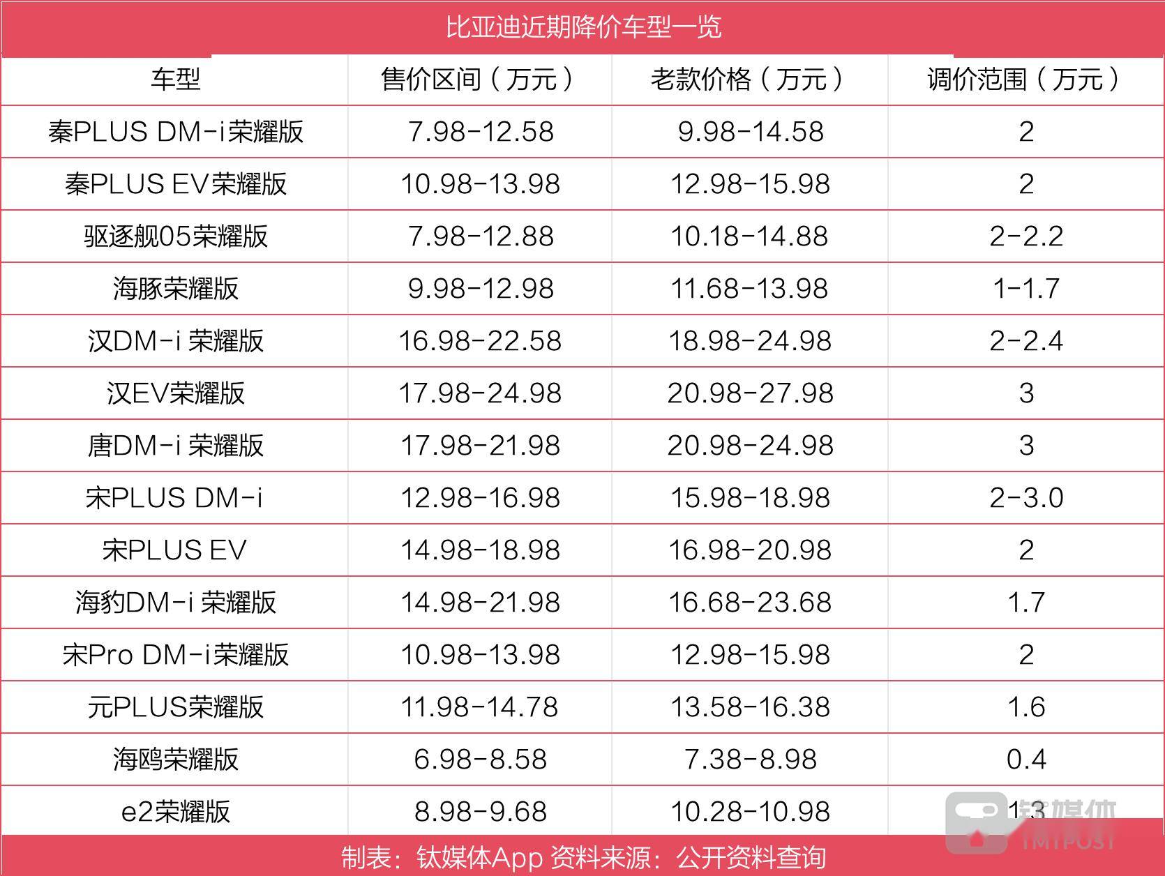 有人将比亚迪的本轮降价特点总结为“刀法精准”,每一款车型降价的背后都藏着要取代燃油车的野心。从A0级到B级,比亚迪和燃油车企之间爆发了一场“电比油低”还是“油比电强”的油电之争。