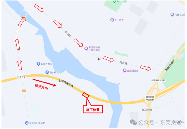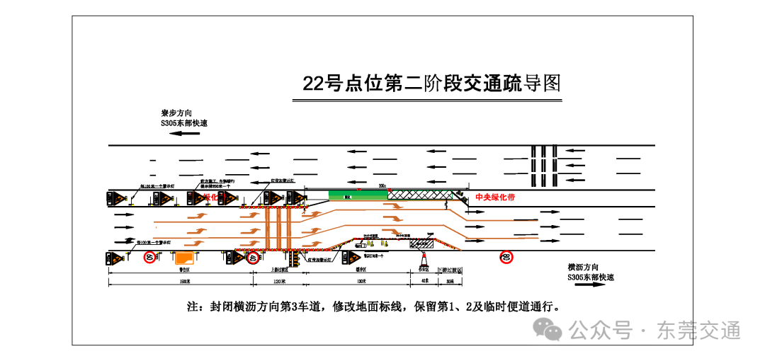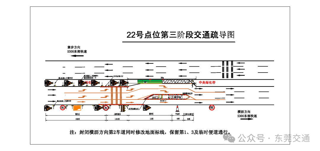 第二阶段为7月7日至7月16日,施工期间会封闭横沥方向第3车道(围蔽时间为全天),保留第1、2车道及临时便道通行。