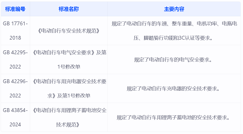 《电动自行车安全技术规范》明确了电动自行车的具体要求: