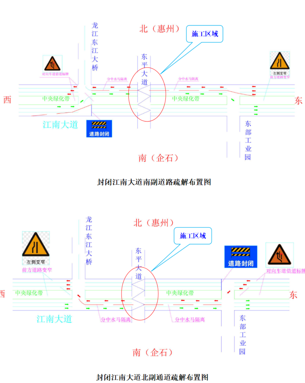- 封闭江南大道(龙江东江大桥至东部工业园)南侧。
