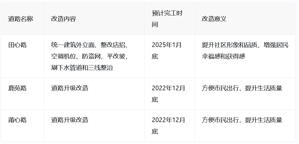 通过此次改造,田心社区的道路网络将更加完善,交通环境将得到显著改善,居民的出行将更加便捷,生活质量将得到有效提升。
