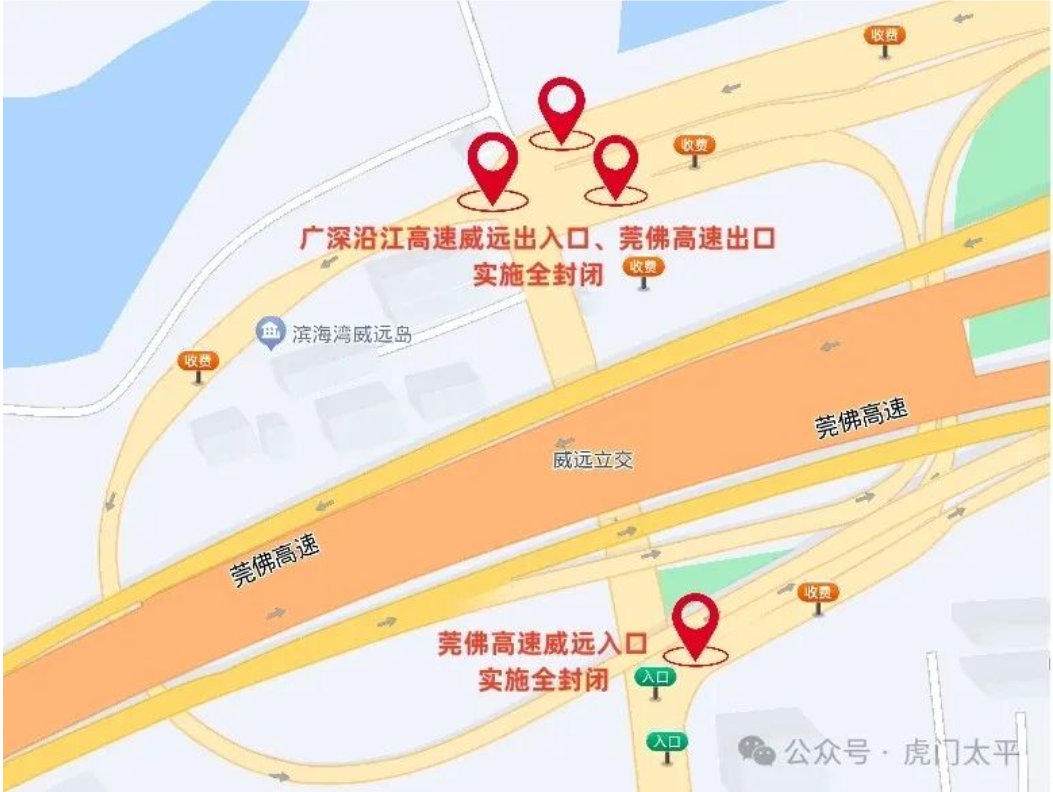 - 措施:莞佛高速、广深沿江高速威远出入口将临时全封闭。