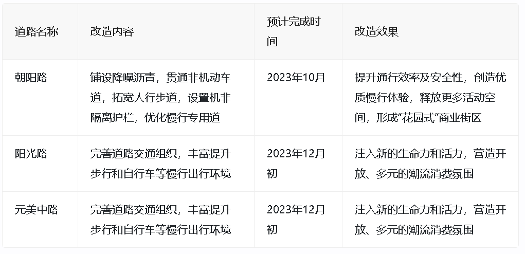 南城海德广场周边整治提升工程的另一部分——阳光路和元美中路的升级改造预计将在今年12月初完成。这两条道路的改造将进一步完善道路交通组织,丰富提升步行和自行车等慢行出行环境,营造更加开放、多元的潮流消费氛围。改造工程的推进将有助于注入新的生命力和活力,为城市带来更丰富的商业氛围和更浓厚的生活烟火气。