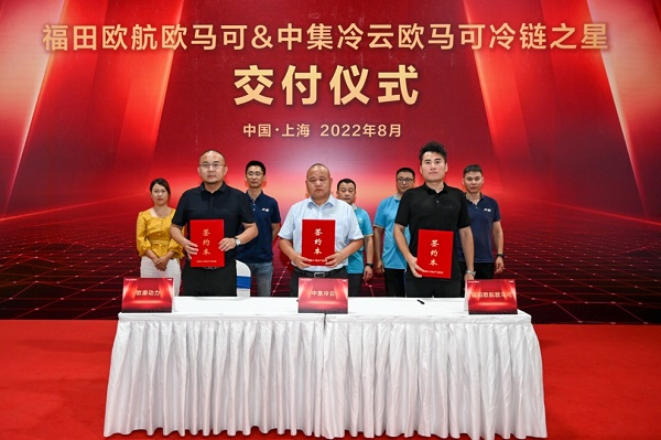 2022年8月10日,在上海市中集冷云(北京)供应链管理有限公司上海分公司举行了欧康动力&中集冷云&欧航欧马可大客户交车仪式。仪式现场,中集冷云、欧航欧马可事业部、欧康动力系统事业部相关领导及经销商和行业媒体受邀出席。