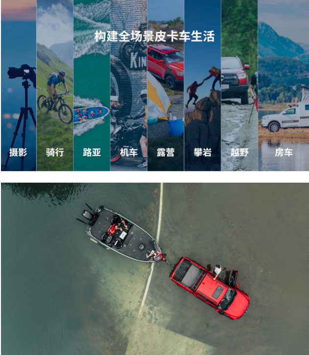 从2020年开始,长城炮便跨界联合越野、骑行、路亚、机车、露营等八大户外兴趣圈层,打造全场景皮卡车生活,快速建立起用户认知纽带,为用户打开“多重玩法”的体验大门。