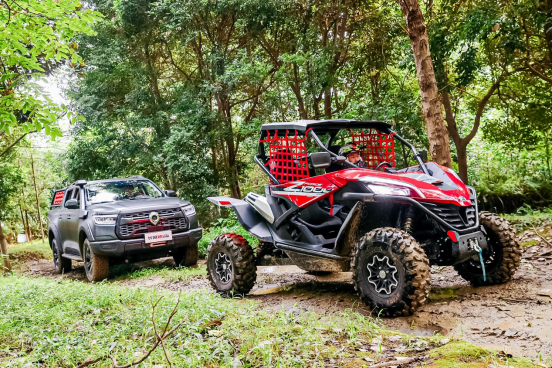作为全新亮相车型,机车炮拥有2米48超长货箱,可以轻松装载机车,高强度梯形车架,通过简单的开关,遥控绞盘钢绳,可以轻松拖拽2吨的重量,轻松解决骑士出行痛点;而硬核大玩具——单排短轴火炮,则是基于坦克平台打造,拥有分时四驱等8项发烧级越野装备,可以进行无限拓展,是完全针对资深越野玩家、机车圈层用户需求而打造的车型。而搭载分时四驱的越野炮,则可根据自身需求进行两四驱切换,让你尽享越野乐趣。