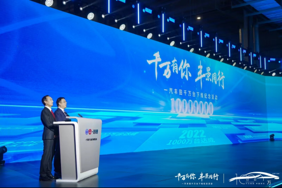 一汽丰田第1000万辆汽车日前在一汽丰田的新能源能源工厂下线。就此,一汽丰田成为国内第8个实现1000万辆销量的乘用车企业。1000万辆的达成,不仅代表着它在过去19年发展历程中的辉煌,更标志着一汽丰田吹响了向未来新发展方向进军的号角。