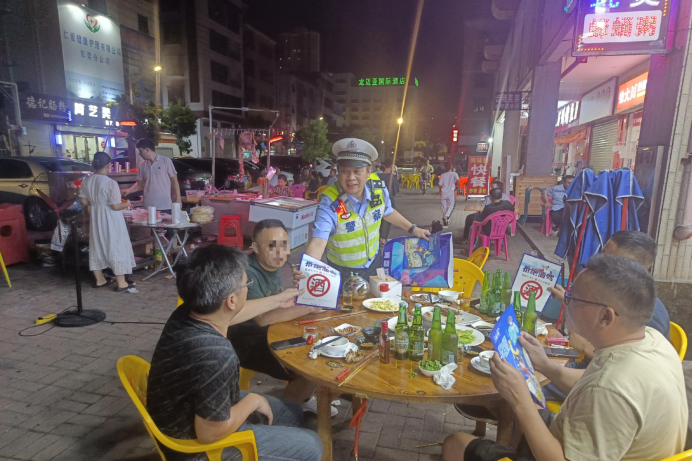 为切实加强道路交通安全宣传工作,增强全民道路交通安全意识,预防和减少道路交通事故的发生。8月14日晚,黄江交警大队深入辖区大排档、KTV等易发生酒驾场所开展“酒后禁驾”主题宣传劝导活动。