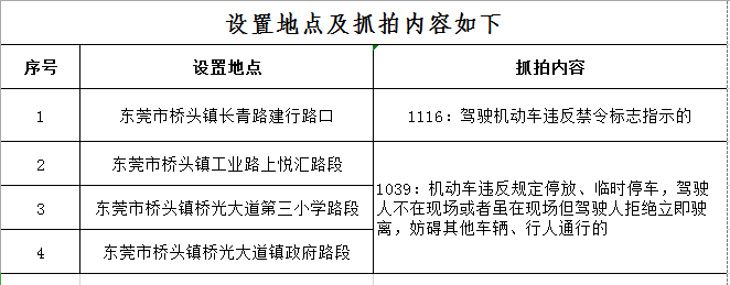 为加强辖区道路交通管控,预防和减少道路交通事故发生,保障道路交通安全、有序、畅通,维护人民群众生命和财产安全,东莞市公安局交通警察支队寮步大队在辖区14个路段(详见表)新增电子警察设备。