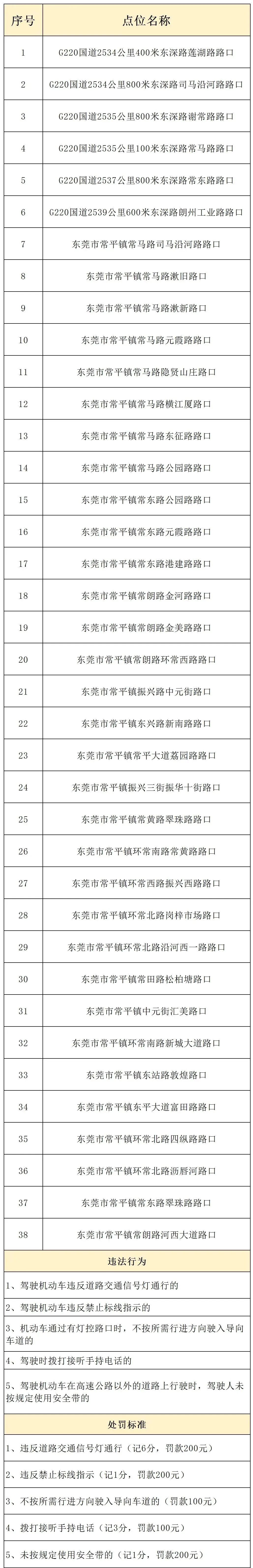 此外,东莞多个路段新增了电子警察进行交通违法抓拍: