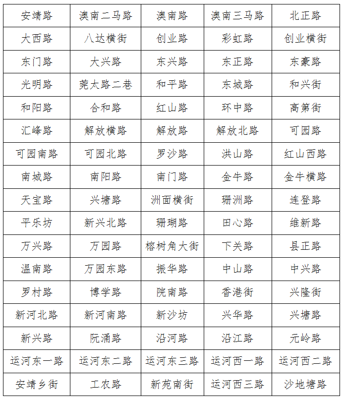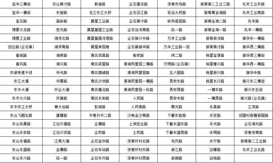 一、企石镇辖区机动车禁停路段一览表