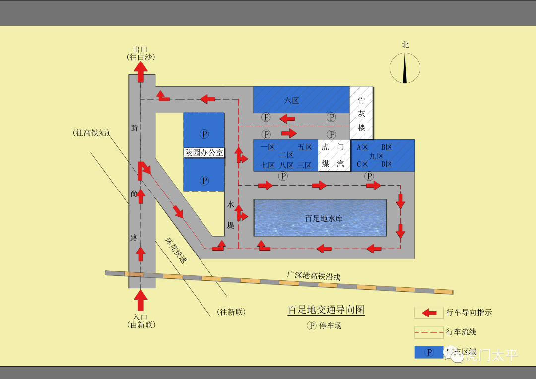 2023年10月14日至10月23日,祭扫车辆从墓园北门(水濂景观路)进入,东门(莞长路107国道)离开,墓园内道路实行单向行驶交通管制。