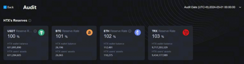 HTX已更新2024年3月默克尔树资产证明,储备金率均保持在100%以上