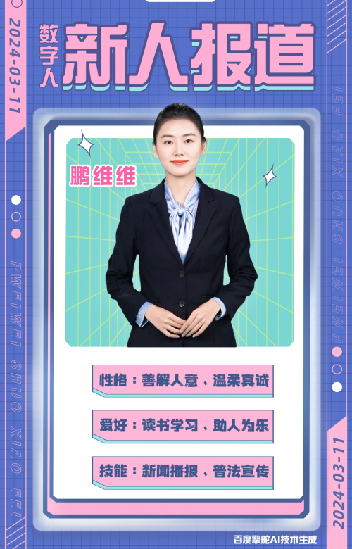 据了解,数字人“鹏维维”由百度AIGC创意生成平台擎舵为其提供了数字人建模、语音克隆、动作捕捉、人工智能和算法驱动等强大的技术支持。擎舵基于文心一言底层大数据模型,利用领先的数字人建模技术和语音克隆技术,实现了对真人和语音1:1还原,还为数字人打造了细腻的表情、连贯的动作,让数字人带给用户更接近真人的交流体验。