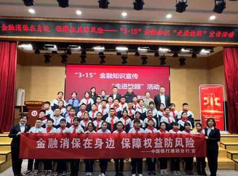 3月14日,国家金融监督管理总局潍坊监管分局联合中国银行潍坊分行走进潍坊经济区实验学校,共同举办“3·15”金融消保宣教“走进校园”活动。