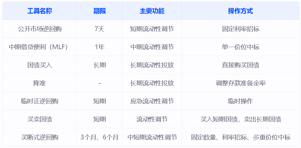 央行的流动性投放工具按期限由短至长包括7天期公开市场逆回购操作、1年期的MLF以及投放长期流动性的国债买入和降准。买断式逆回购的推出填补了1个月到1年中短期流动性投放工具的欠缺。