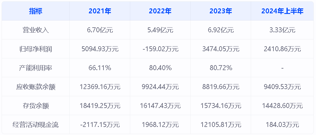 万事利2021年至2023年及2024年上半年营业收入分别为6.70亿元、5.49亿元、6.92亿元及3.33亿元;归母净利润分别为5094.93万元、-159.02万元、3474.05万元及2410.86万元。