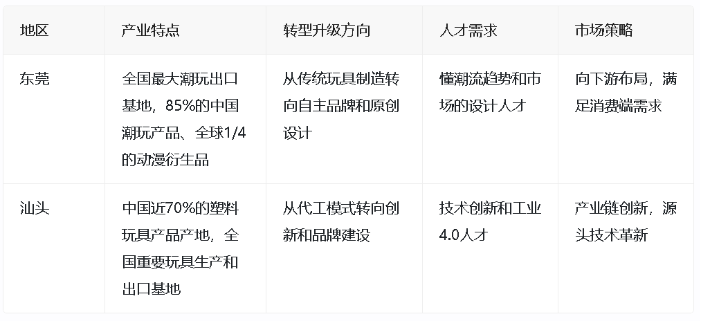 - 东莞的潮玩产业从传统玩具制造转型而来,注重自主品牌和原创设计。