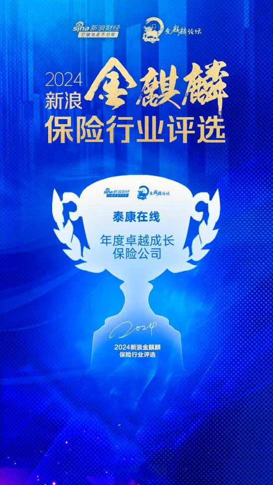 近日,由新浪财经主办的“2024新浪金麒麟保险行业评选”结果正式揭晓,泰康在线凭借在科技创新、服务质效、业务增长等多维度的突出表现,荣获“年度卓越成长保险公司”称号。该奖项不仅是对泰康在线过去一年发展成果的高度认可,也是对企业在保险行业高质量发展过程中所做贡献的充分肯定。