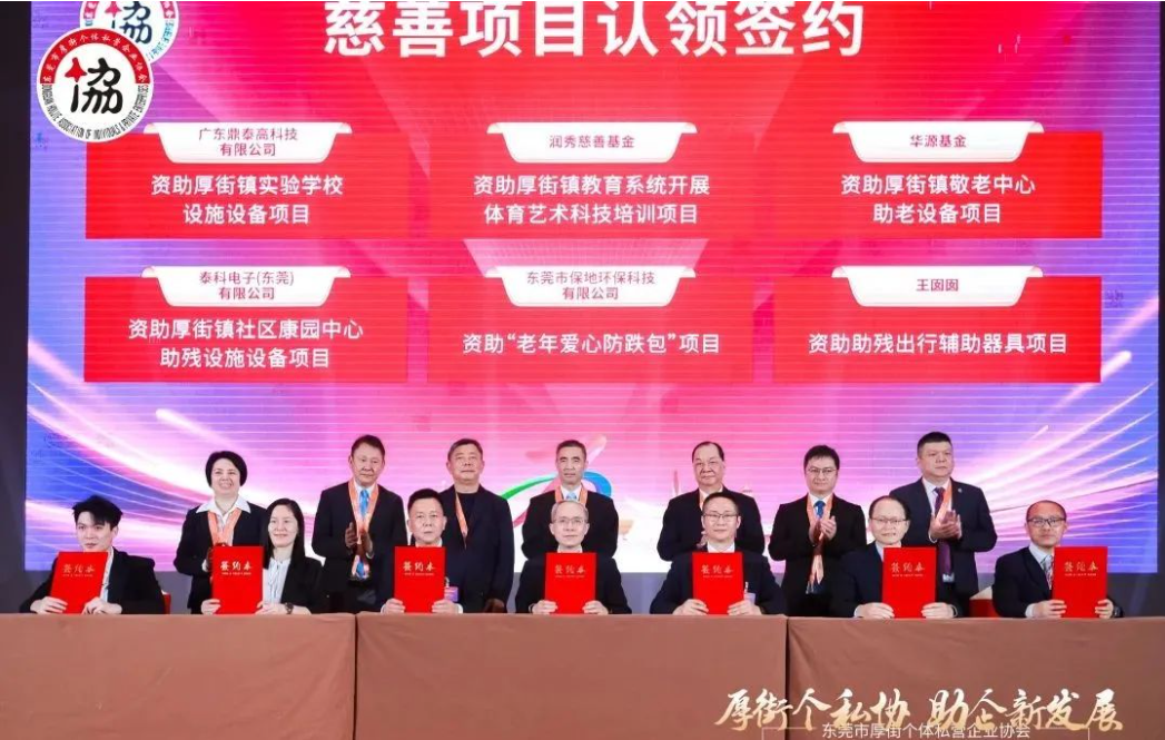 陈尚荣强调,民营经济已成厚街发展核心引擎,要求个私协会创新服务机制,在就业拉动、税收贡献、技术革新领域持续发力。现场举行51家标杆企业授牌仪式,"东莞优品""名特优新"等55家获奖企业彰显产业升级成果。鼎泰高科等6家企业签约慈善项目,涵盖教育设施升级、助老助残设备等民生领域,永益等三家获助企业回赠锦旗致谢。