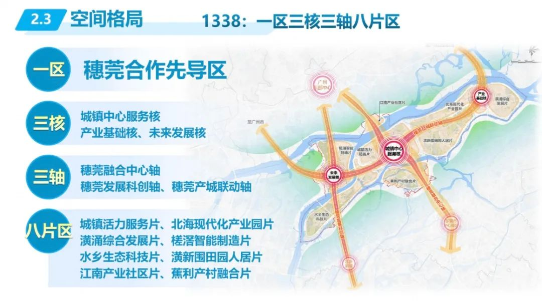 这份规划文本暗藏破局密码:"一区三核三轴八片区"的空间架构绝非简单的地理切割,而是直指产业链条重塑的核心命题。穗莞合作先导区的全域布局,将107国道这条传统物流通道升维为穗莞深科创要素的传输动脉,新槎大桥与京港澳高速的立体联动更构建起覆盖空港经济的黄金走廊。值得关注的是,城镇中心服务核与北海产业基座的协同进化,既保留了造纸产业集群的存量优势,又为TOD模式下的智造创新预留战略纵深,这种"传统产业做厚基底、未来产业筑高天际"的复合打法,在湾区镇域经济转型中堪称范式突破。