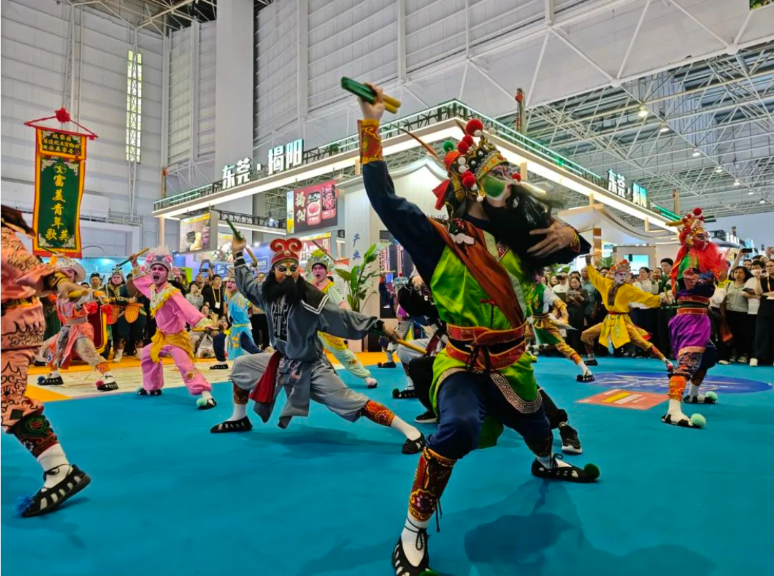 当普宁富美青年英歌队的傩面在镁光灯下旋转出残影,揭阳学院的文创团队正将非遗符号转化为消费密码。印有英歌舞图腾的亚克力冰箱贴单日售出2000件,红桃粿造型的智能恒温杯在跨境电商平台斩获十万级预售订单。非遗传承与现代商业的化学反应在特装馆持续迸发:惠来木雕大师将传统虾蟹篓雕刻技法融入现代家居设计,推出的新中式摆件系列吸引6家连锁酒店集团询价采购。