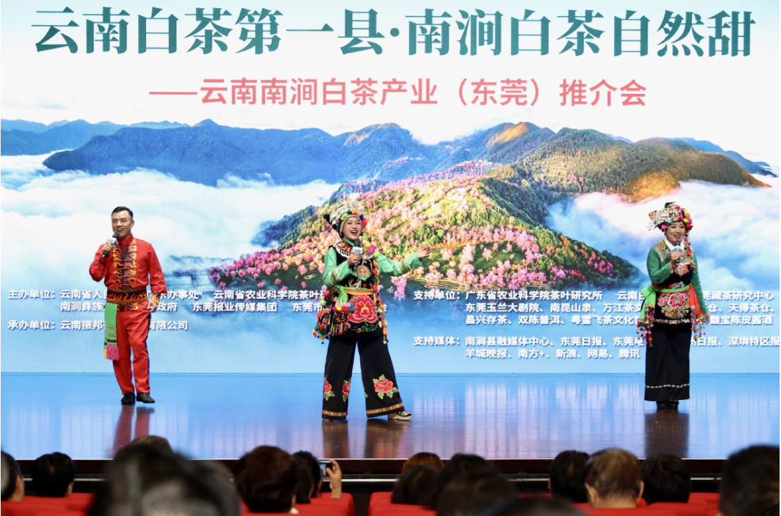 骤起的铜鼓声中,彝族汉子头顶茶盘跃上舞台。"南涧跳菜"的舞步踏出产业节拍——演员足底绑着的传感器,实时传输出72个节奏点。东莞茶协会长赵沛良在观众席拍击座椅扶手:"这韵律像极了白茶萎凋的翻叶频率!"