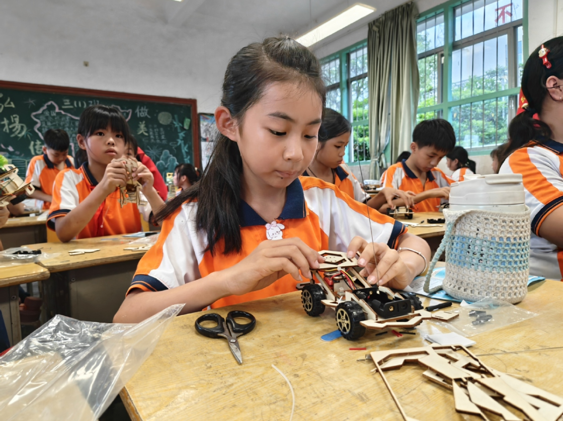6月23日清晨,揭阳揭东区埔田镇庵后小学的操场上,50双稚嫩的手掌托起智能遥控汽车模型,在阳光下折射出金属光泽。这场由东莞职业技术学院电子信息学院第一党支部与庵后小学联合举办的智能科技宣讲活动,正以"智启揭东新程,电亮党建先锋"为主题,点燃山区孩子的科技梦想。