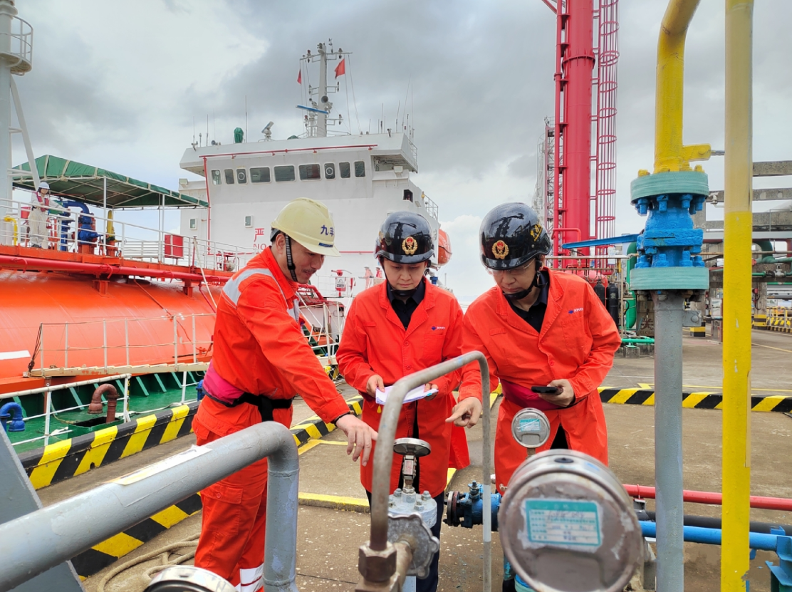 "海关系统凌晨就亮起船舶进港预警。"九丰公司关务经理施菁在中央控制室紧盯屏幕。沙田海关启用的油气液化监控系统正实时反馈管道压力、流量及储罐液位数据。专窗关员同步完成单证核验,电子放行指令直达码头作业系统。这种"船到即检、合格即放"模式,使企业物流成本降低12%,上半年已保障2.57万吨LNG高效入关,货值达1.1亿元。