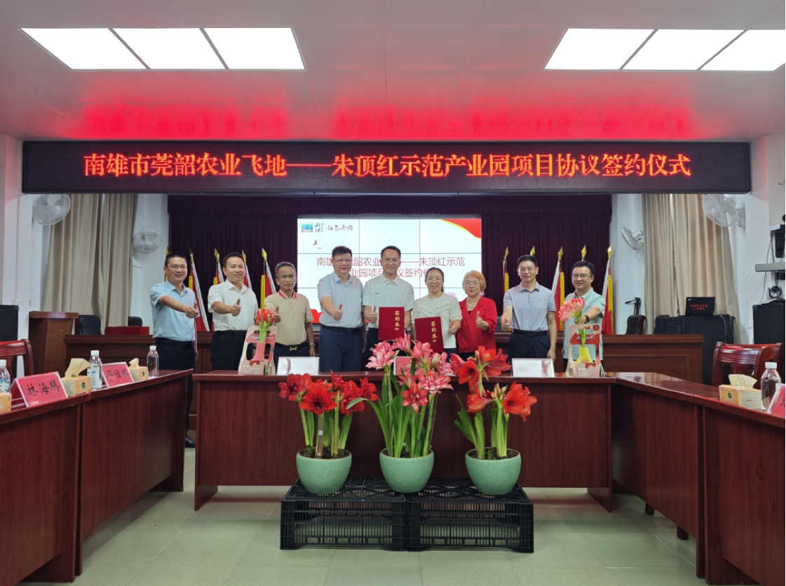 7月28日下午,莞韶农业飞地-朱顶红示范产业园签约仪式在韶关南雄市古市镇政府举行。在莞韶指挥部与南雄市政府支持下,广东圣茵花卉园艺有限公司与南雄市达优农业开发有限公司(古市镇强镇富村公司)正式达成合作,项目选址古市镇丰源村,总投资约1200万元。圣茵公司现场介绍项目规划:将建设种质资源圃、新品种展示区、标准化生产示范区三大核心板块,同步配套培训直播室与冷链仓储设施,形成集种植研发、销售推广、农旅体验于一体的产业链。
