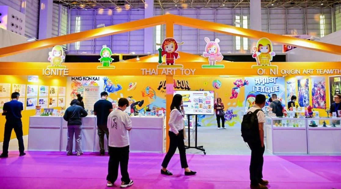 国际板块呈现鲜明地缘特色。泰国馆开馆仪式于8月8日10:30启动,作为中泰建交50周年献礼,主宾国展区以金佛雕塑与霓虹灯牌混搭出赛博泰式美学。ACTIF与泰国PKN机构签署的供应链协议墨迹未干,鸡尾酒会上的中国厂商已围着泰方设计师探讨神像IP本土化改造。次日11:00论坛厅内,日本奥特曼设计师中田和幸展示初代手稿时,韩国授权协会会长赵泰奉正用平板演示K-pop联名潮玩案例,三国企业代表在圆桌碰撞出"共享东亚文化基因库"的协作构想。